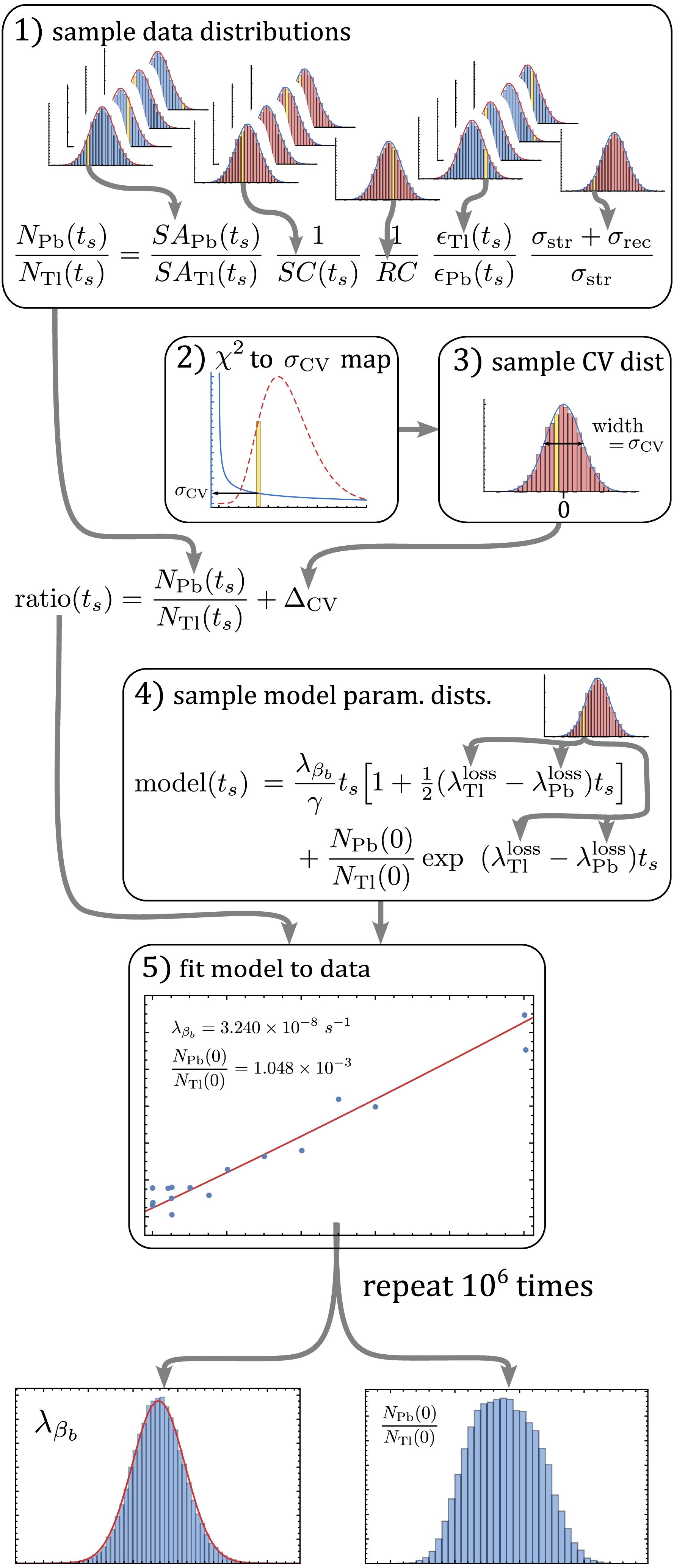 $ \lambda_{\beta_b} $ and$ N_{\rm{Pb}}(0)/N_{\rm{Tl}}(0) $ .This method was repeated 106 times to produce a distribution of final model parameters. Our code for the MC method is also available publicly in Ref. [25].