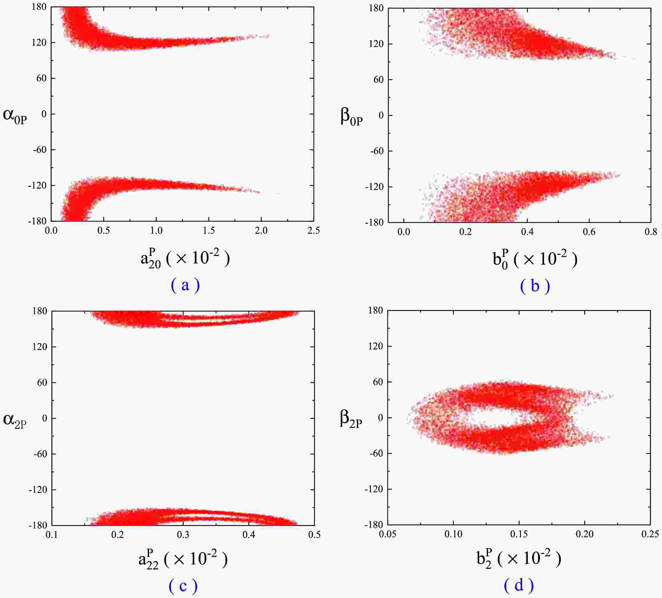 $ a^{M}_{1J} $ ,$ a^{M}_{2J} $ ,$ b^{M}_{J} $ ) are complex. Given that an overall phase can be removed without losing generality, we set$ a^{M}_{1J} $ to be real. Five real independent parameters are considered in data analysis:$ a^{M}_{1J},~~~~ a^{M}_{2J}{\rm e}^{{\rm i}\alpha_{JM}},~~~ b^{M}_{J} {\rm e}^{{\rm i}\beta_{JM}}. $