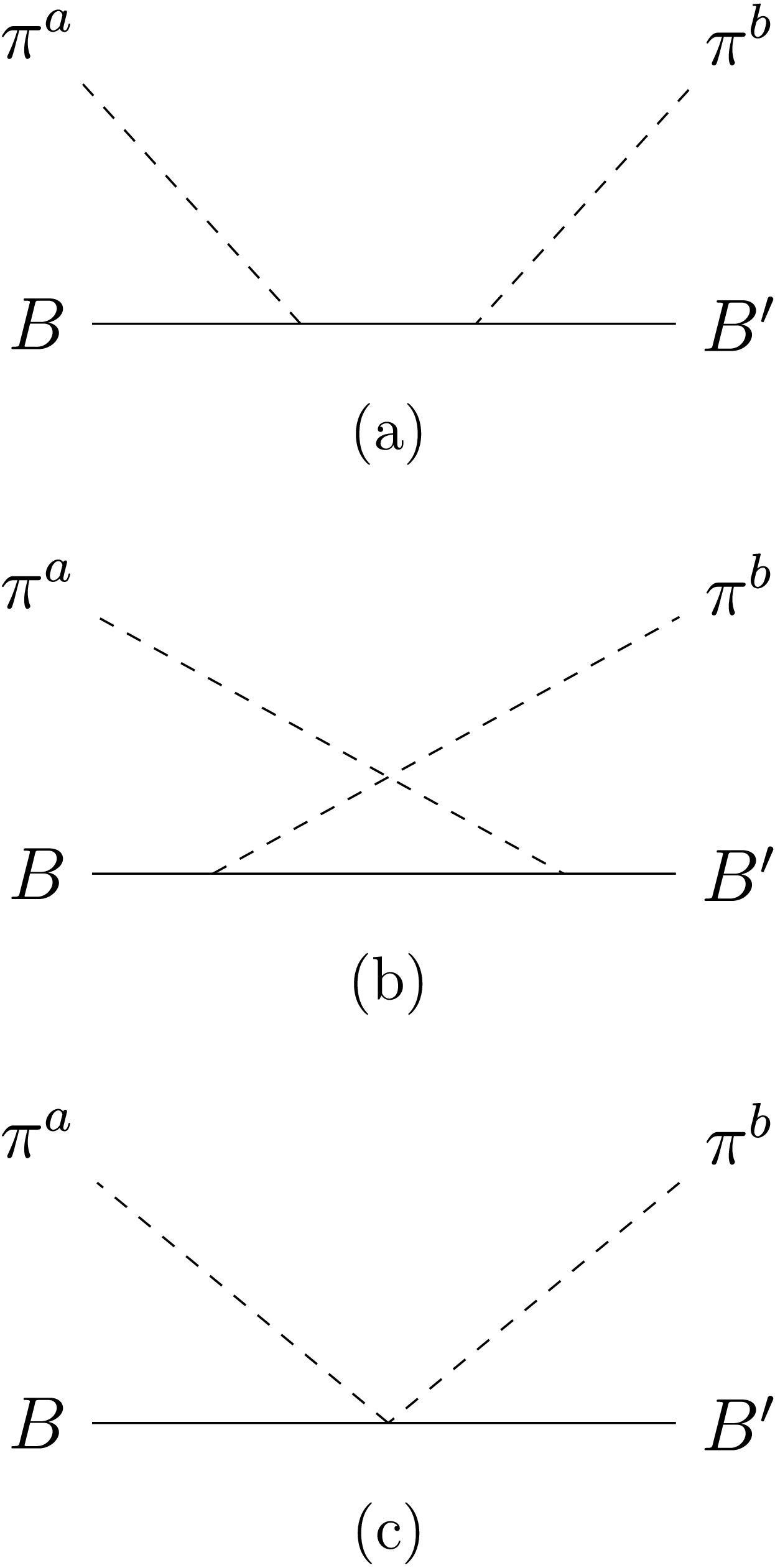 $ {\cal{A}}_{\rm{LO}}^{ab} $ given in Eq. (3) between$ S U(6) $ baryon states, where mesons are labelled with flavors a and b, yield the corresponding scattering amplitude, namely,$ {\cal{A}}_{\rm{LO}}(B + \pi^a \to B^\prime + \pi^b) \equiv \langle \pi^b B^\prime|{\cal{A}}_{\rm{LO}}^{ab}|\pi^a B\rangle. $
