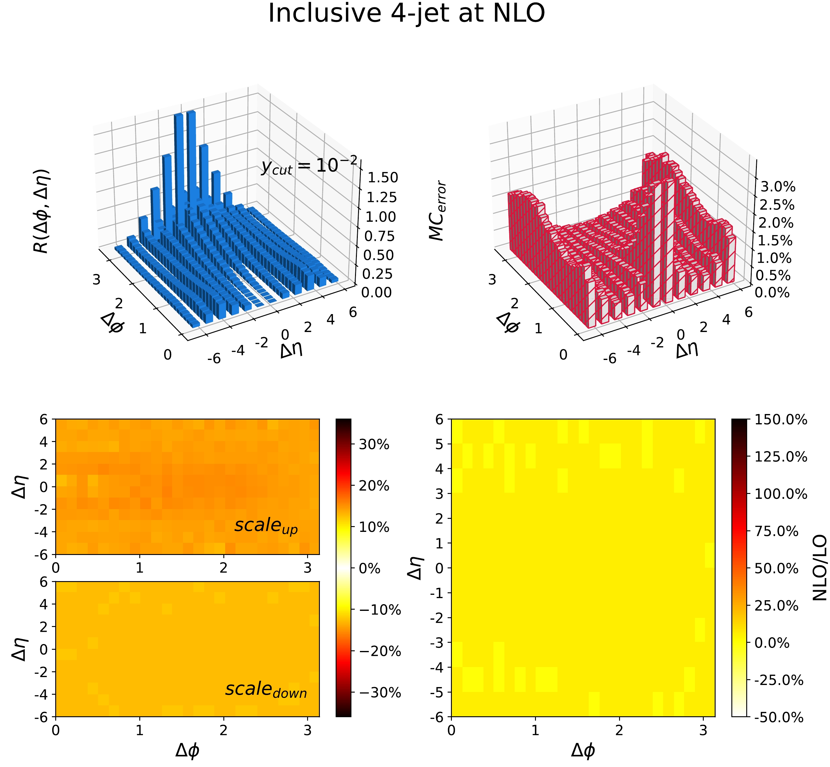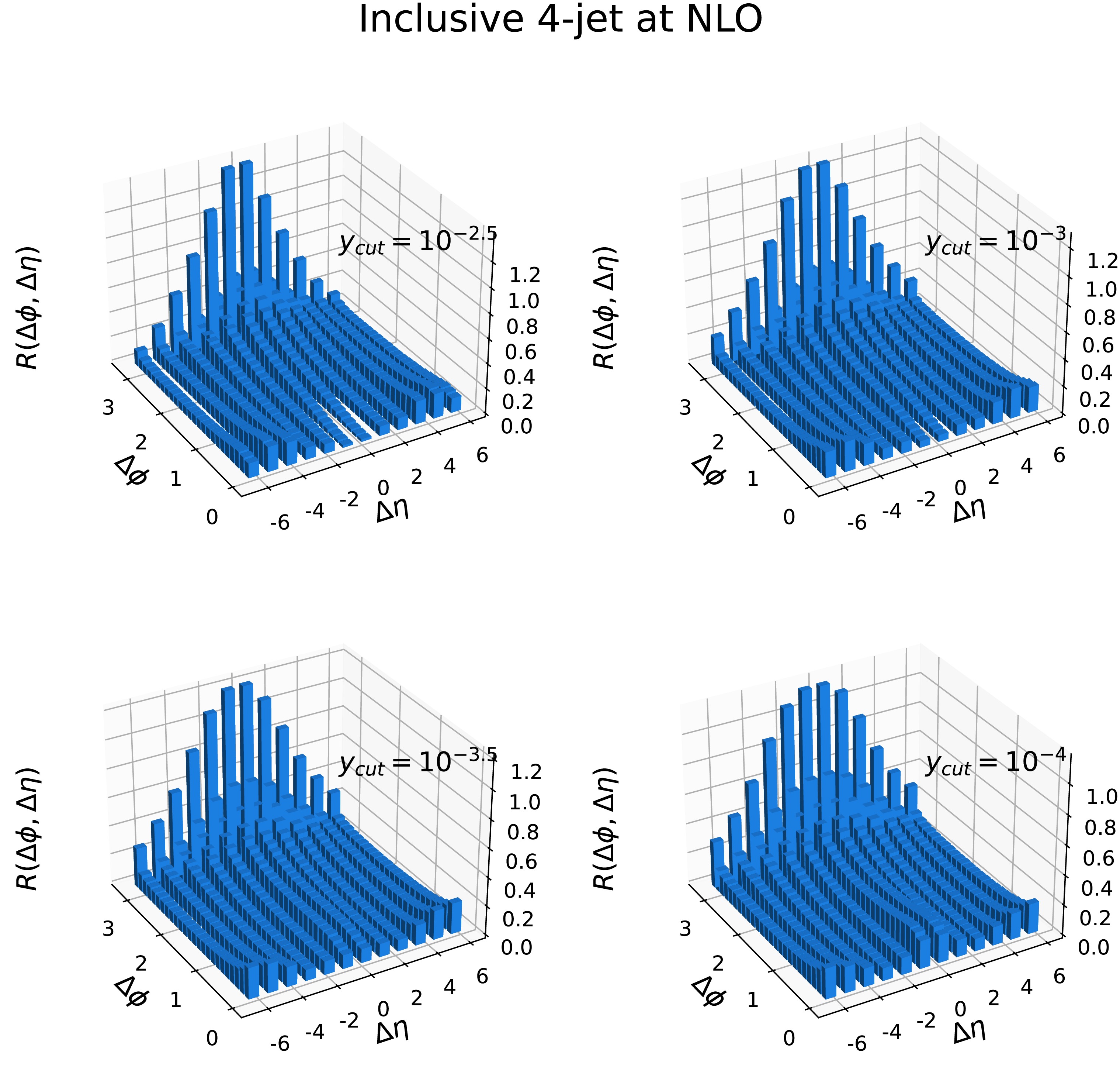 Figure 12. (color online) Long pseudo-rapidity range ϕ correlation (Ridge) distribution in the inclusive 4-jet events at NLO for