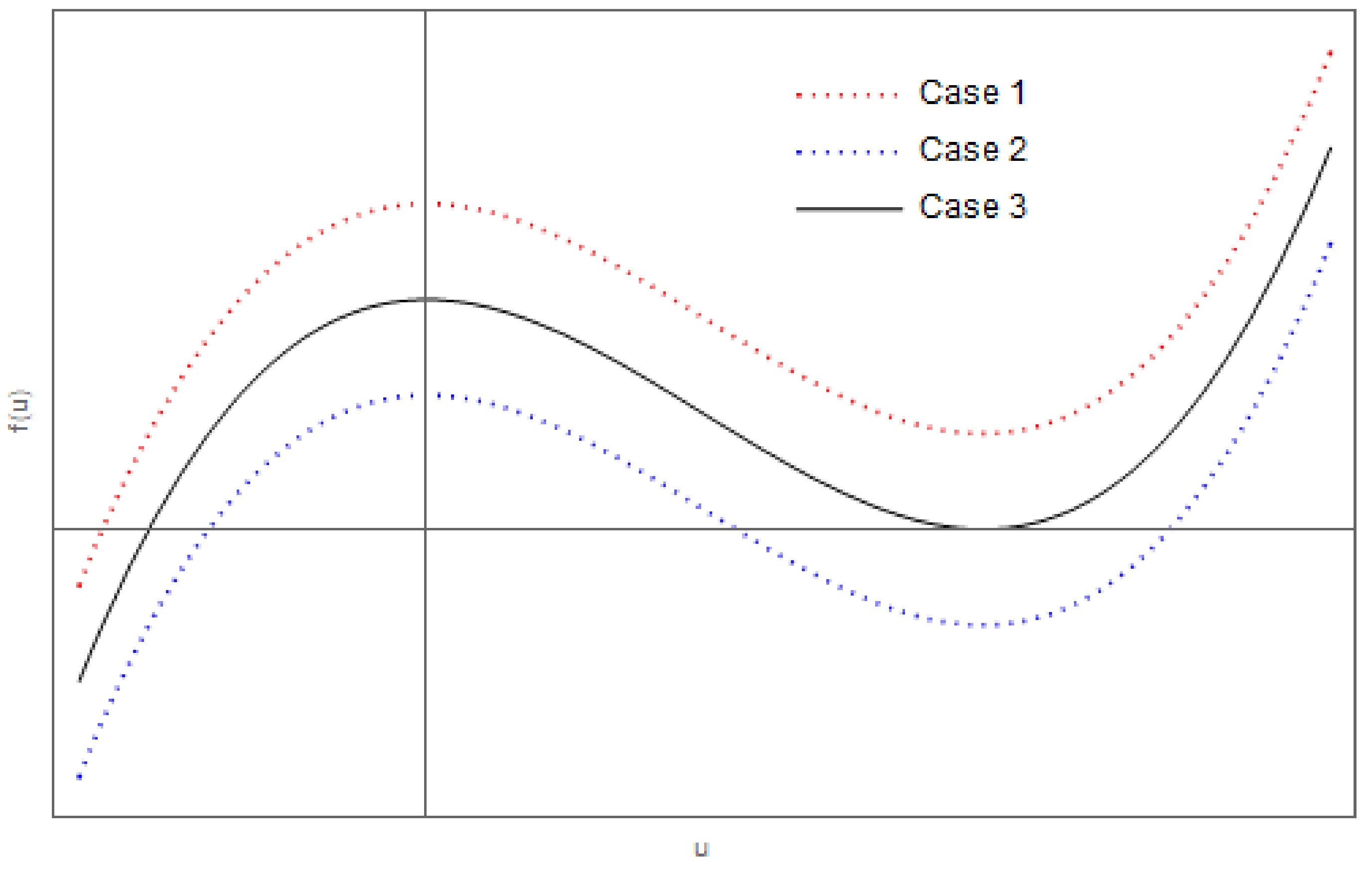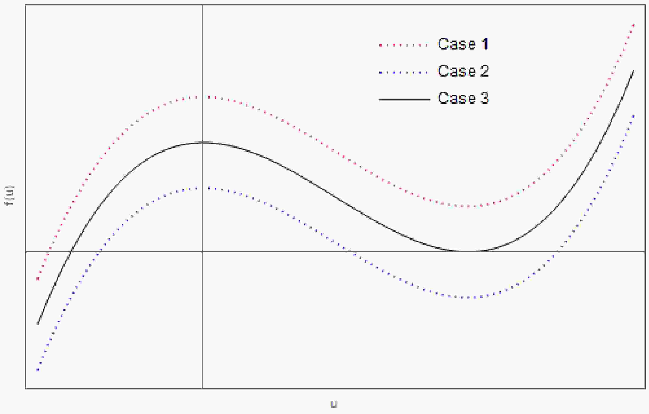 $ f(u) = 0 $ . Since$ f(0) = \frac{E^2}{L^2}>0 $ , there is always a negative root. The three possible orbital types — absorption, scattering, and critical — correspond to the nature of the remaining roots; see Fig. 1. For the critical orbit, the remaining two positive roots coincide at$ u_c $ , that is:
