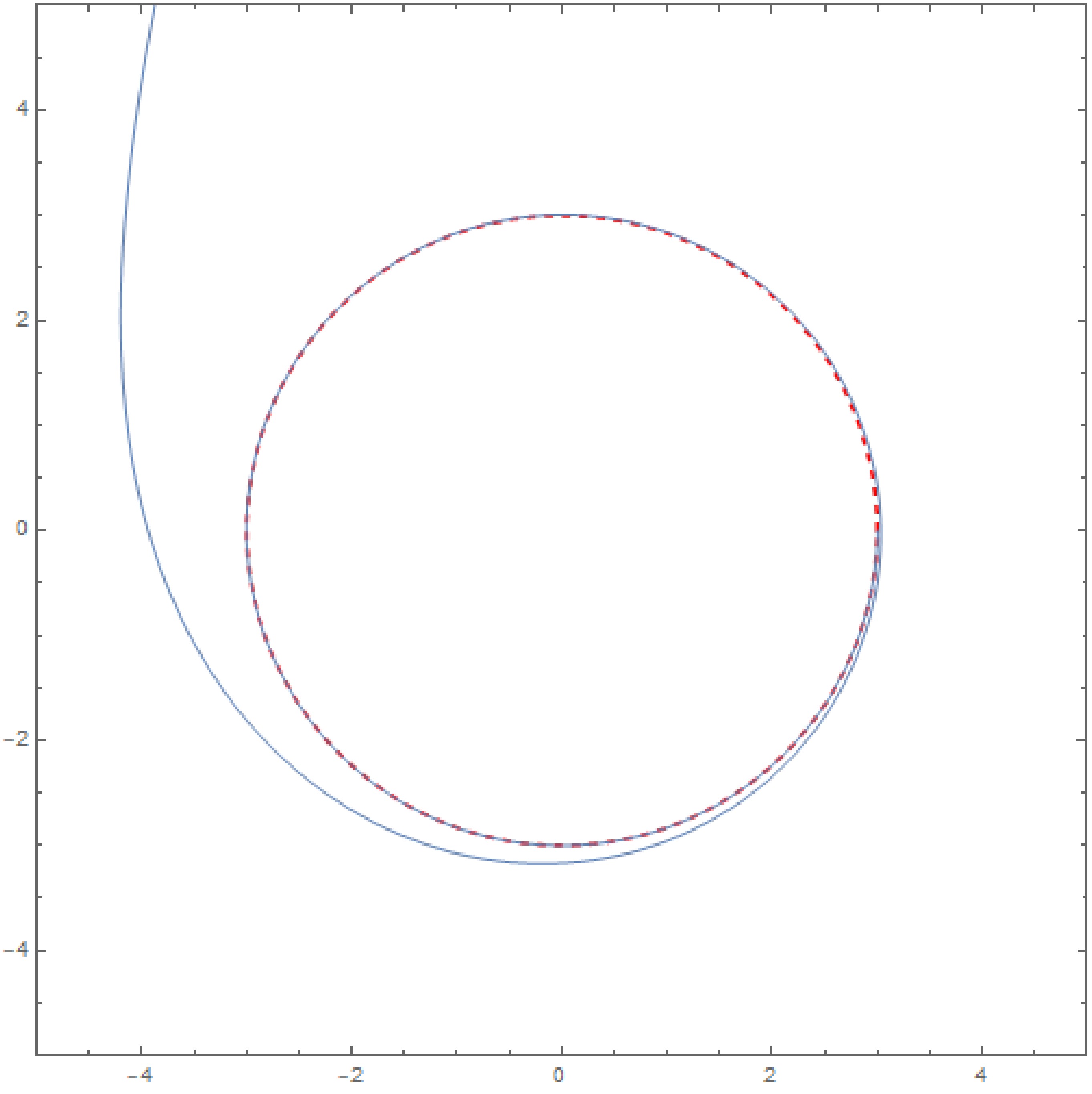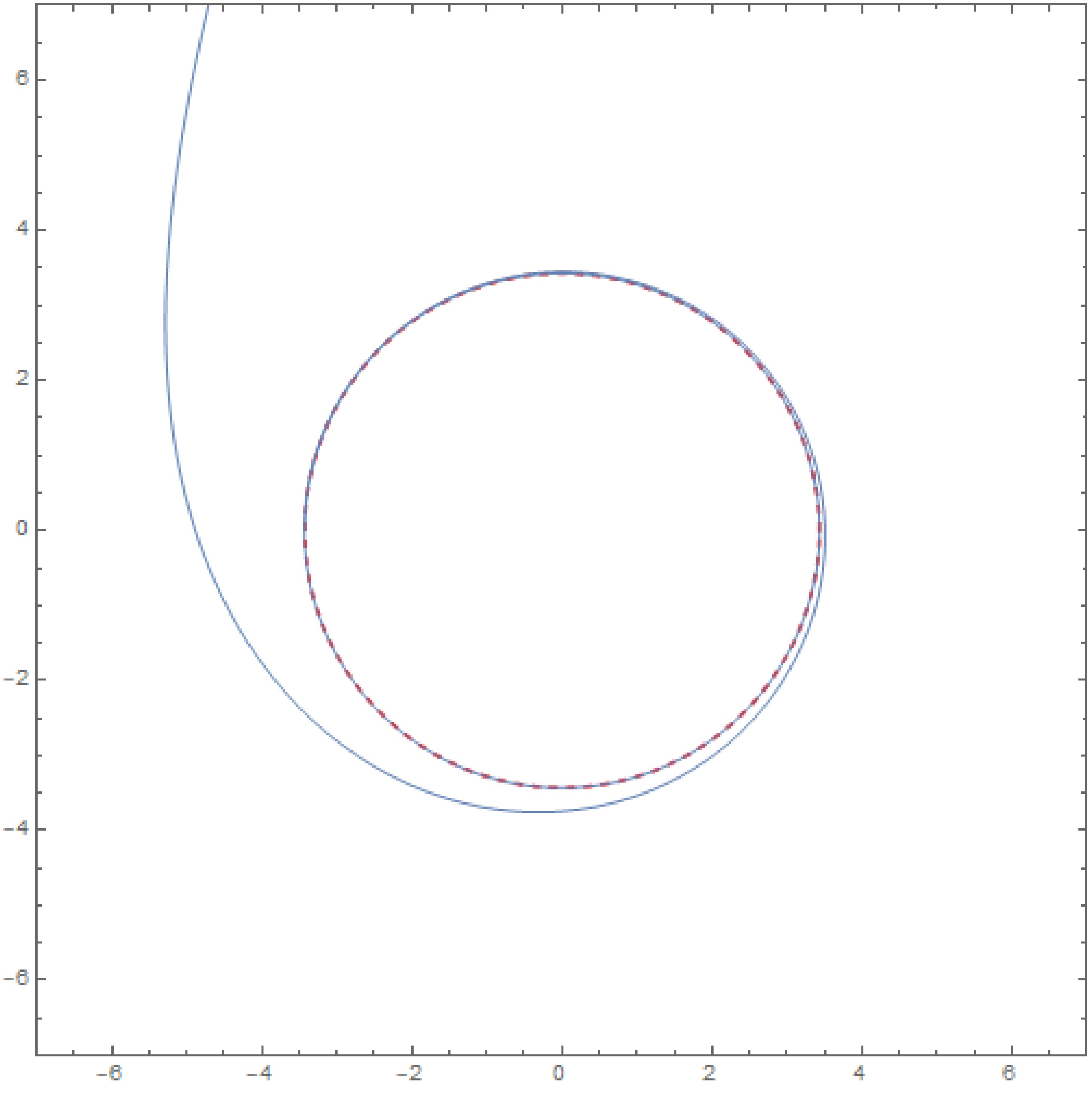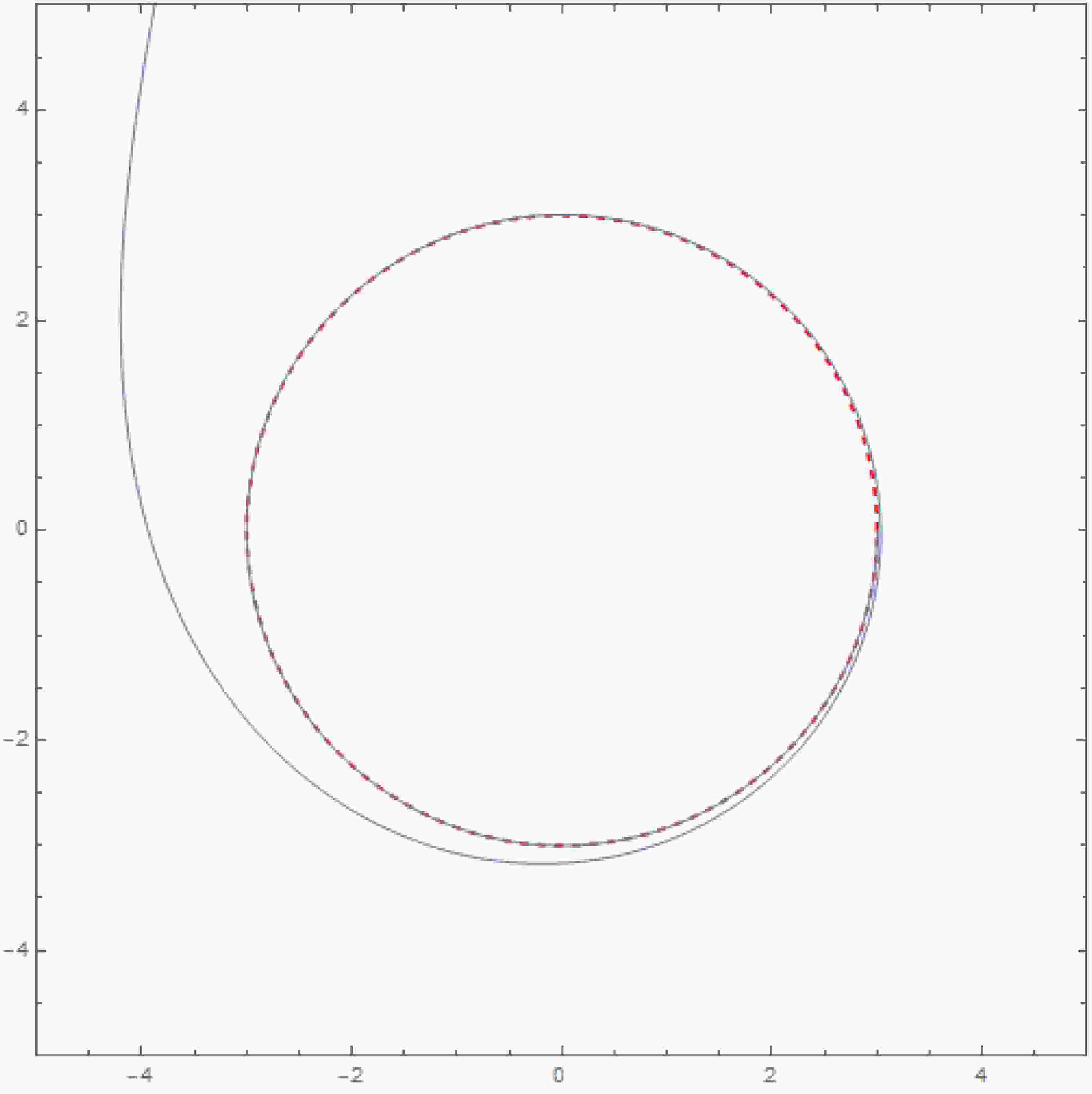 $ \varphi_0 $ is an integration constant. The critical null geodesic is shown in Fig. 2, depicting the trajectory of a massless particle originating at infinity and spiraling inward, asymptotically approuching the circular at$ r_c = 3M $ . -