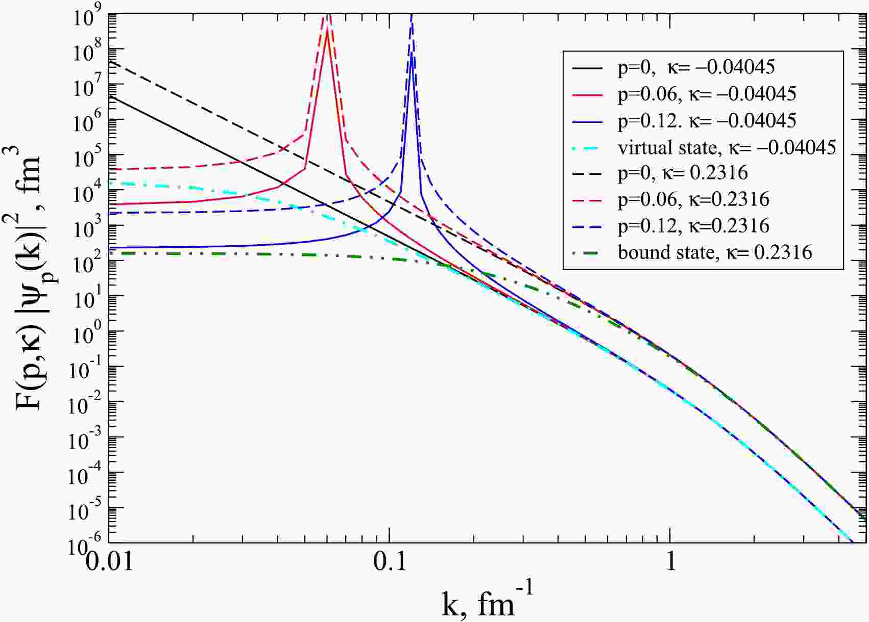 Therefore, one can consider the momentum distribution for the virtual state in a similar manner as for the bound-state (2) as follows: