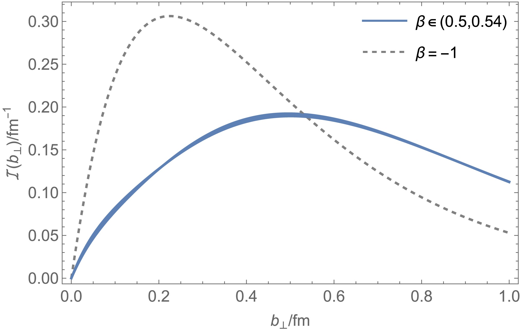 $ p_{i,f}^2=(K\mp Q/2)^2=0 $ for the incoming and outgoing meson momentum, respectively. The computed charge densities$ {\cal{I}}(b_\perp)=2\pi b_\perp \rho(b_\perp) $ are shown in Fig. 3.