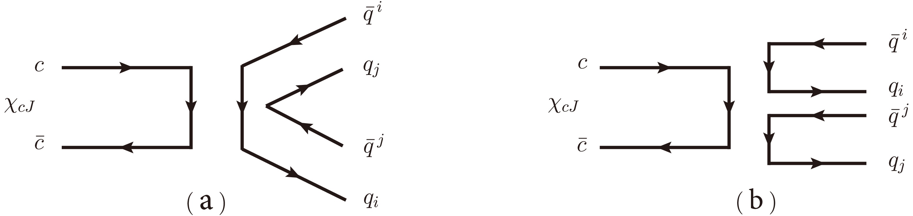 $ \Gamma _{\chi_{cJ}} $ is the decay width of the$ \chi_{cJ} $ meson, and the center-of-mass momentum is expressed as$ |\vec{p}|\equiv \dfrac{\sqrt{[M_{\chi _{cJ}}^{2}-(m_{M_1}+m_{M_2})^{2}][M_{\chi_{cJ}}^{2}-(m_{M_1}-m_{M_2})^{2}]}}{2M_{\chi _{cJ}}} $ . -