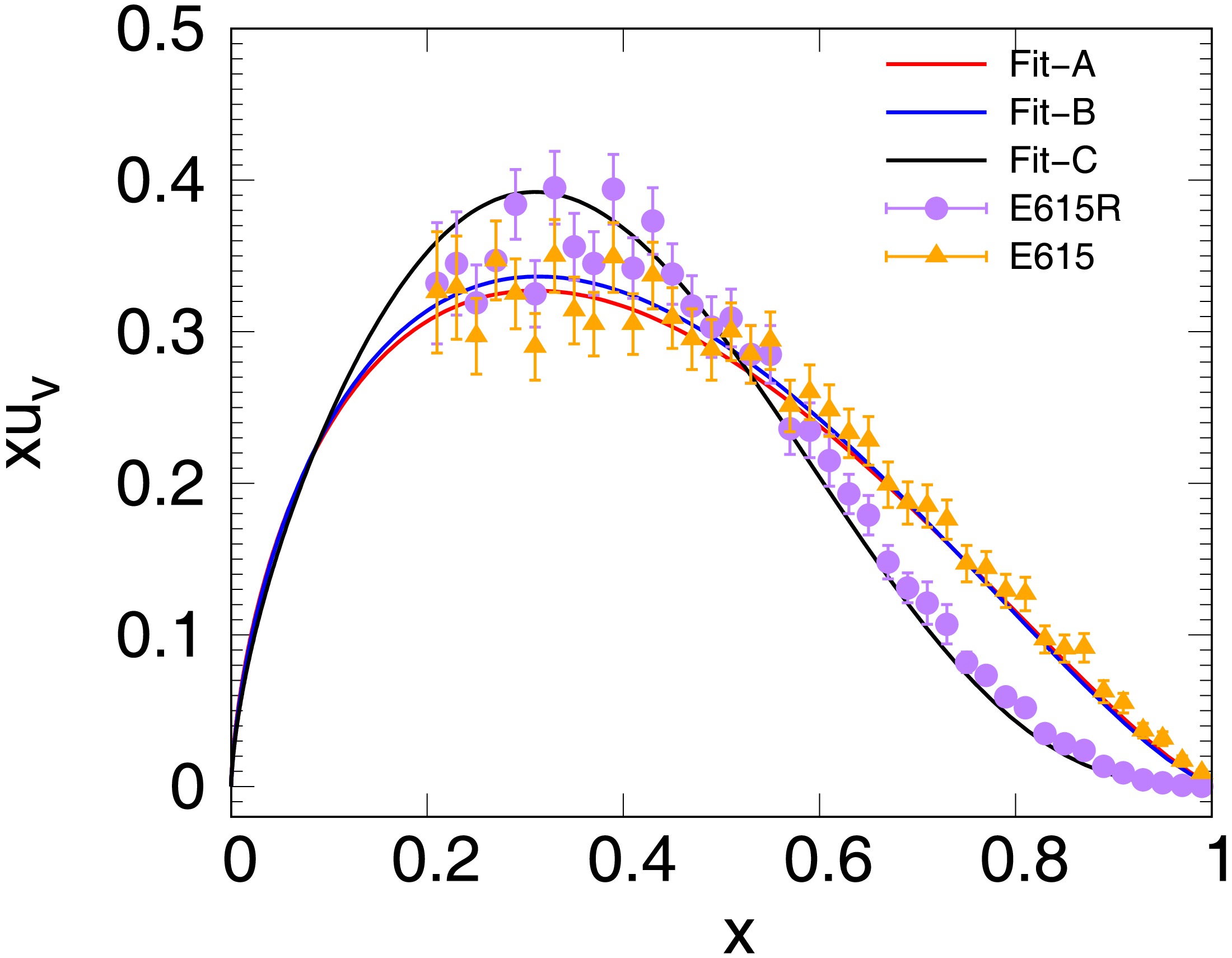 Fit-A 0.093 0.0 0.915 1.012 0.006 0.006 − 0.680 Fit-B 0.096 0.0 0.917 1.153 0.072 0.121 0.151 0.638 Fit-C 0.142 0.180 0.928 0.724 −0.132 1.932 24.171 1.445 Fig. 3 shows the up valence quark distribution function at