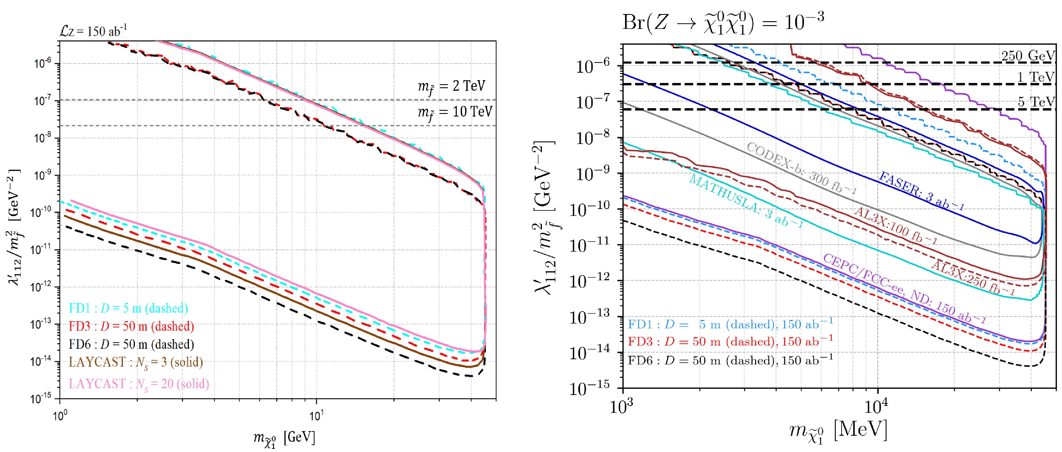 Besides the aforementioned detectors, several far detectors are proposed to search for LLP. Compared to the main detector near the collision point, far detectors can significantly enhance the ability to detect LLP, particularly when the decay length of the LLP reaches on the order of hundreds of meters. Examples of such detector proposals, including FADEPC and LAYCAST, are discussed in detail in Section VII. Far detectors are expected to work synergistically with the main detector, greatly extending the CEPC's capability for exploring new physics.