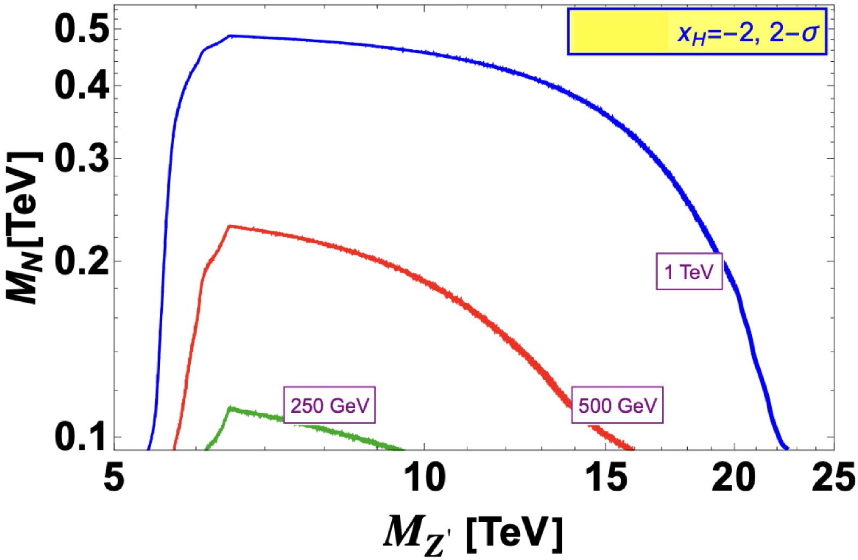 $ m_H $ . The soft Higgs masses$ m_{H_u} $ and$ m_{H_d} $ are not set equal to$ m_0 $ , but instead obey the relation$ m_{H_u}=m_{H_d}=m_{H} $ at the GUT scale.• NUHM2 (Non-Universal Higgs Mass 2). The constraint on the soft Higgs masses is further relaxed so that