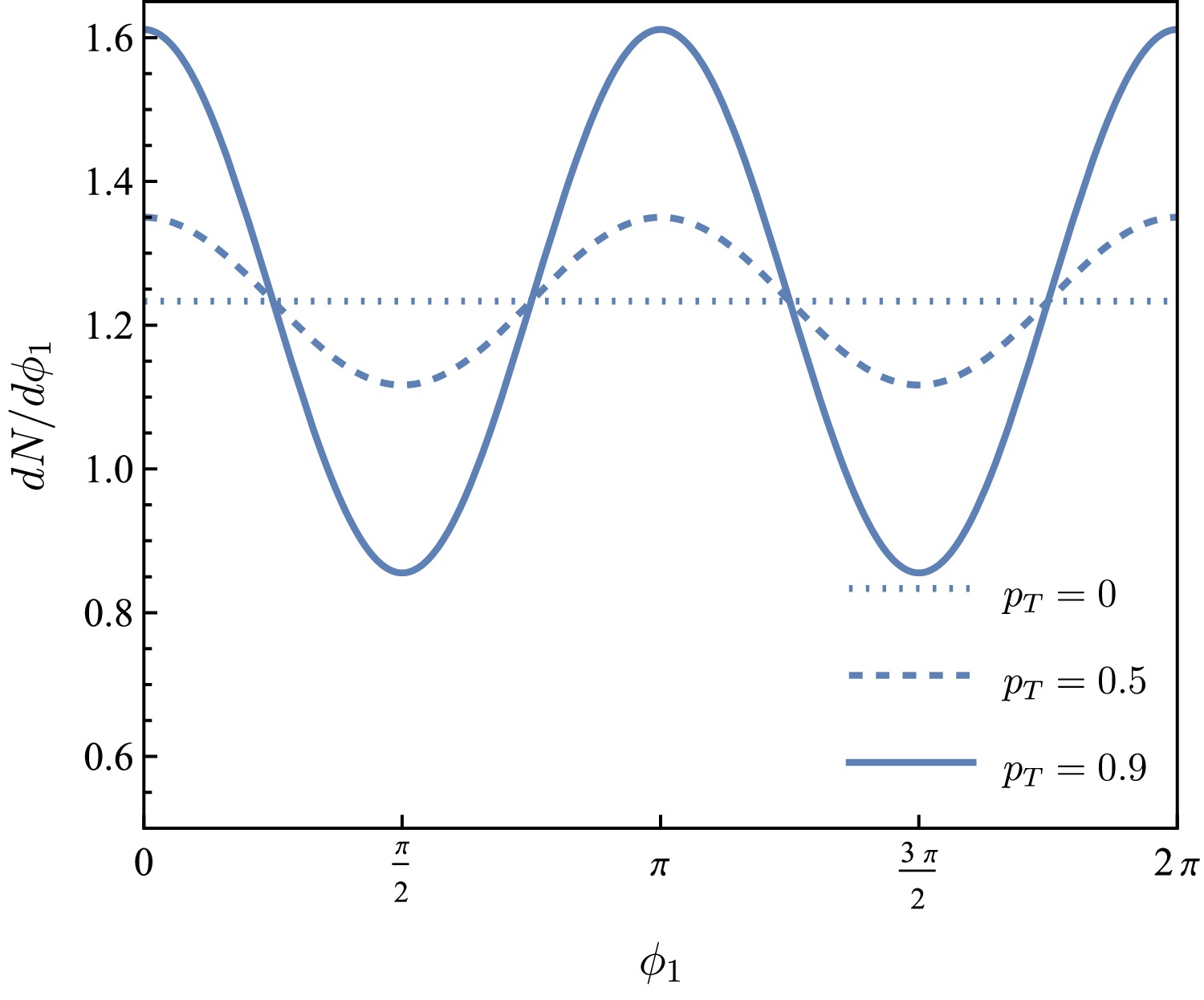 $ \phi_1 $ for$ p_T=0 $ ,$ 0.5 $ ,$ 0.9 $ (dotted, dashed and solid lines, respectively).
