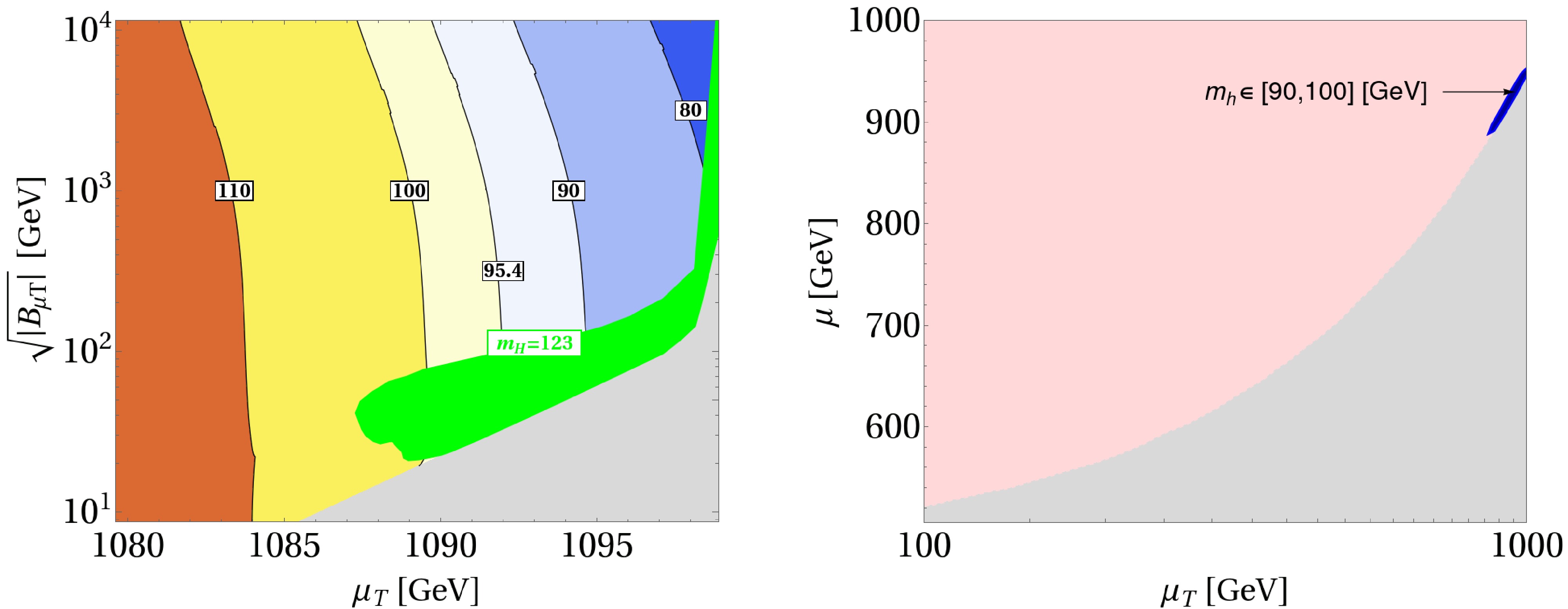 $ B_{\mu_T} $ in Fig. 1 (left panel). The residual minor dependence on$ B_{\mu_T} $ arises from loop-level corrections.