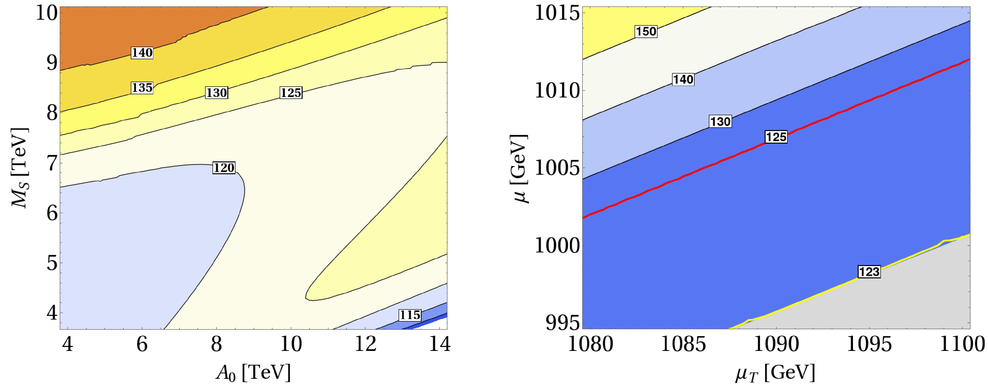 Figure 1. (color online) Left: Contour plot of the lightest Higgs mass