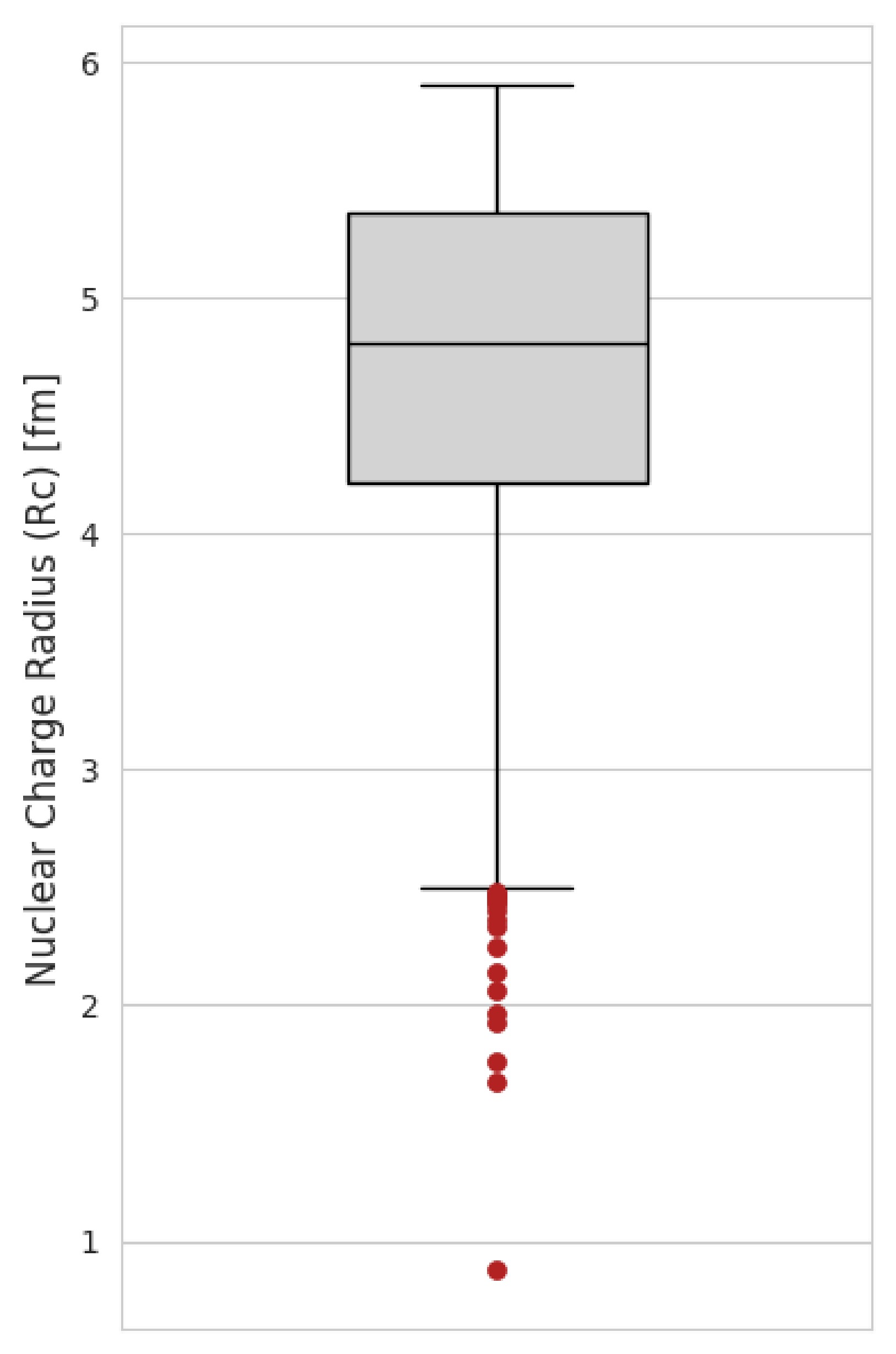 (10) Based on this technique, 17 out of 1040 nuclei were falling outside the lower fence. Figure 1 shows the resulting box plot with outliers highlighted in red, and Table 1 lists the corresponding nuclides.